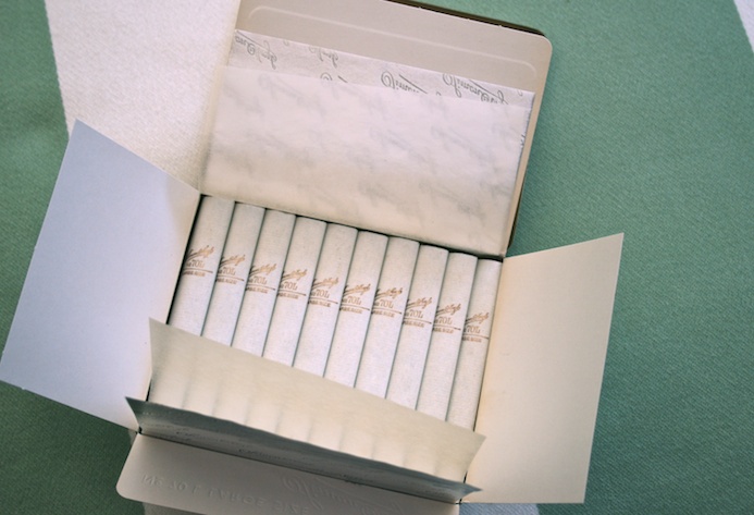 Dieses guterhaltene Päckchen ist noch mit der Cellophanhülle versehen. Zu einem späteren Zeitpunkt werde ich es öffnen und eine Zigarette geniessen.