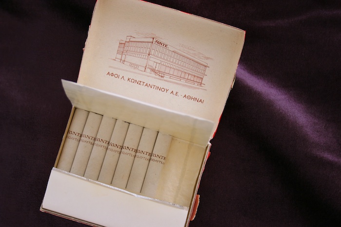 Santé oder Zante. Länge: 68mm. Durchmesser: 10mm. Format: oval. Hergestellt bei L. Konstantinou A.E. Auf der Packung ist Zozo Ntalmas (Zozo Dalmas), geb. 1905 in Konstantinopel/Istanbul, gest. 1988 in Athen, eine berühmte Operndiva und Filmschauspielerin aus den 30er und 40er Jahren zu sehen. Sie war die geheime Geliebte von Kemal Ataturk, dem Gründer der modernen Türkei. Die Marke wurde in den 40er Jahren von den Konstantinides Brüdern gegründet. In den 90er Jahren wurde die Marke von Papastratos gekauft, welche wiederum 2003 von Phillip Morris übernommen wurde. Zum diesem Zeitpunkt wurde die Marke in Zante umbenannt. Santé1Santé2Santé3